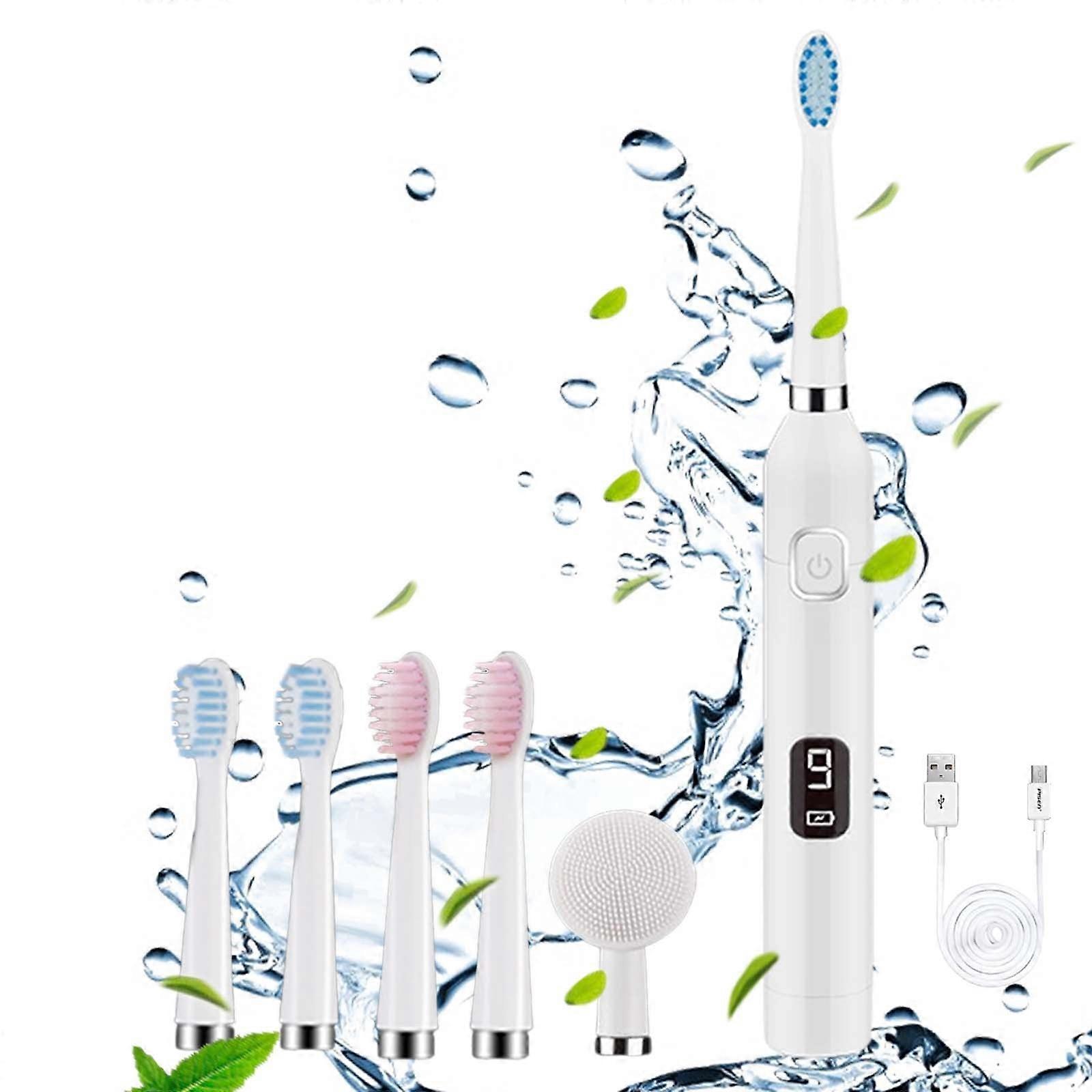 Kiplyki Electric Toothbrush with 5 Brush Heads + Cleaning Head, 9 Modes & 20-Speed Timer, IPX7 Waterproof - Compatible with Replacement Heads