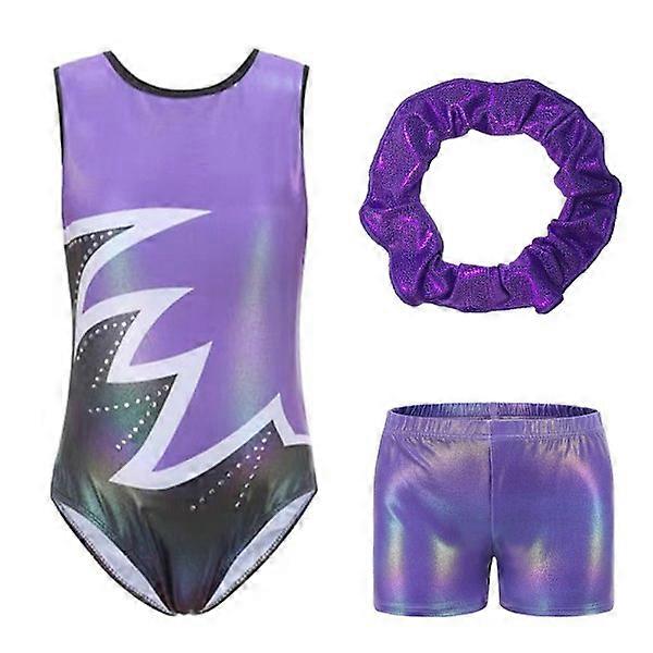 Girls' gymnastics leotards, glittery dance costumes, biketards, workout clothes for girls purple 7-8Y