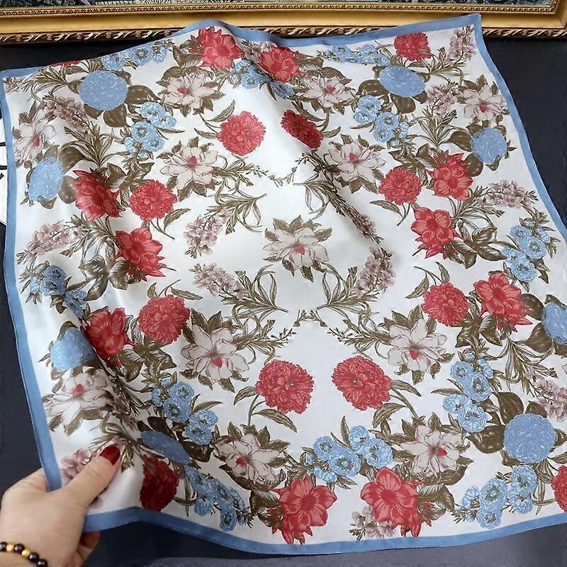 100% Silk 27" Square Scarf Women Neckerchief Wrap Bandana White Red Blue Flowers