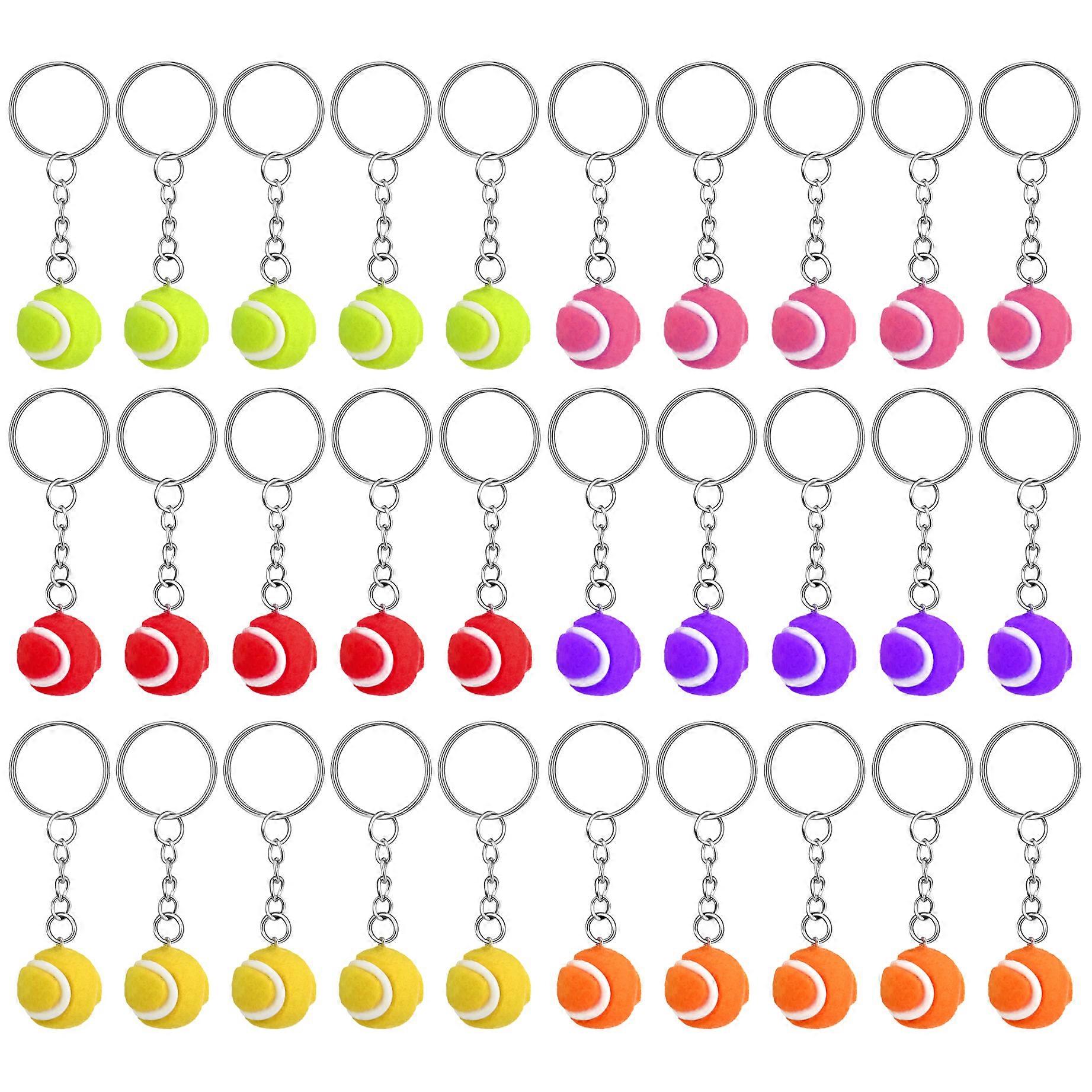 30Pcs New Design Tennis Ball Key chain Car Key Ring sport chain sliver color Bag pendant KeyChains For Man Women Gift