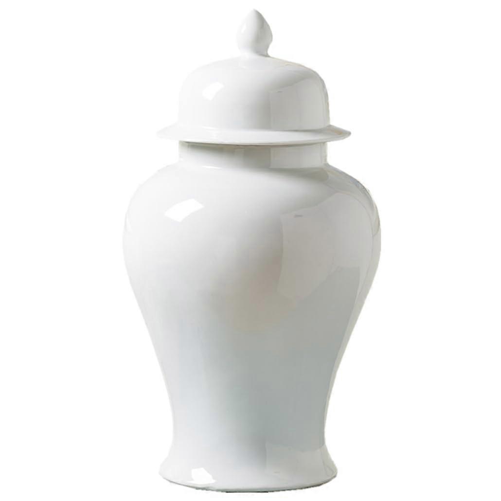 White Ceramic Ginger Jar with Lid, Chinoiserie Porcelain Vase for Elegant Home Decor, Medium