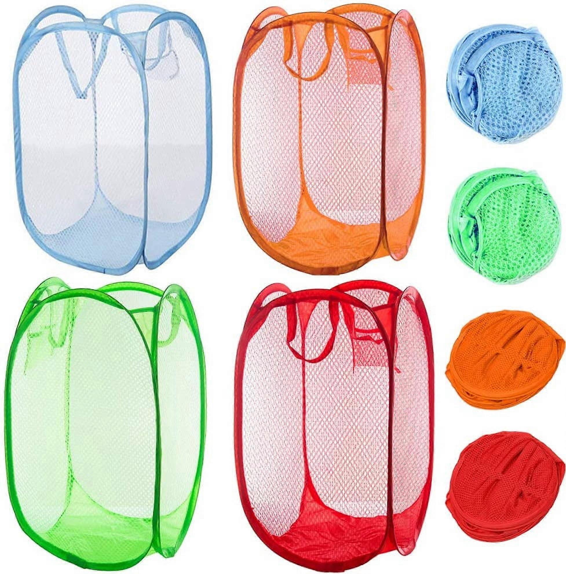 Mesh Pop Up Laundry Hamper, Collapsible Basket with Side Pocket, Foldable Clothes Storage Bin for Bedroom, Dorm, Camp, Travel