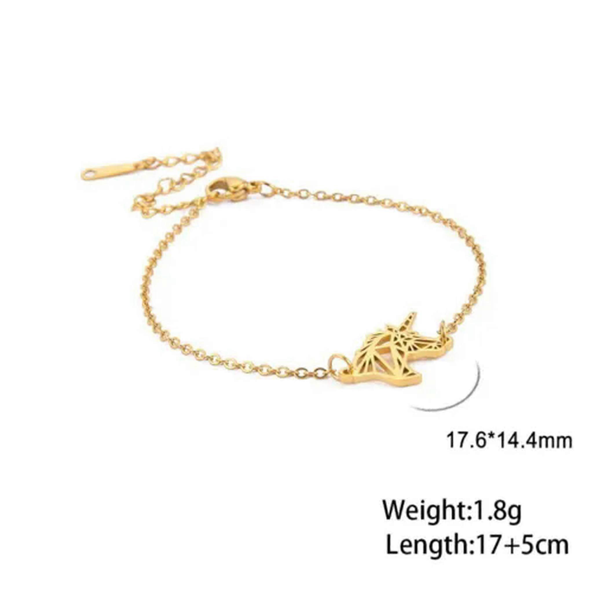 RSAMD Stainless Steel Unicorn Hand Bracelets for Women Girls Charm Bracelet Jewelry-17 -22 cm-Gold Color