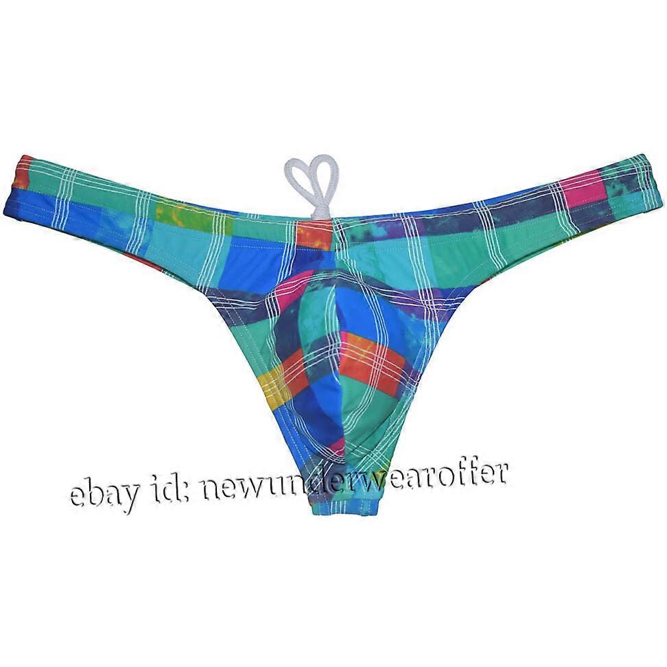 Men Print Thong Swimsuit Drawstring Bikini Sport Swimwear Surf Board Swim Trunks