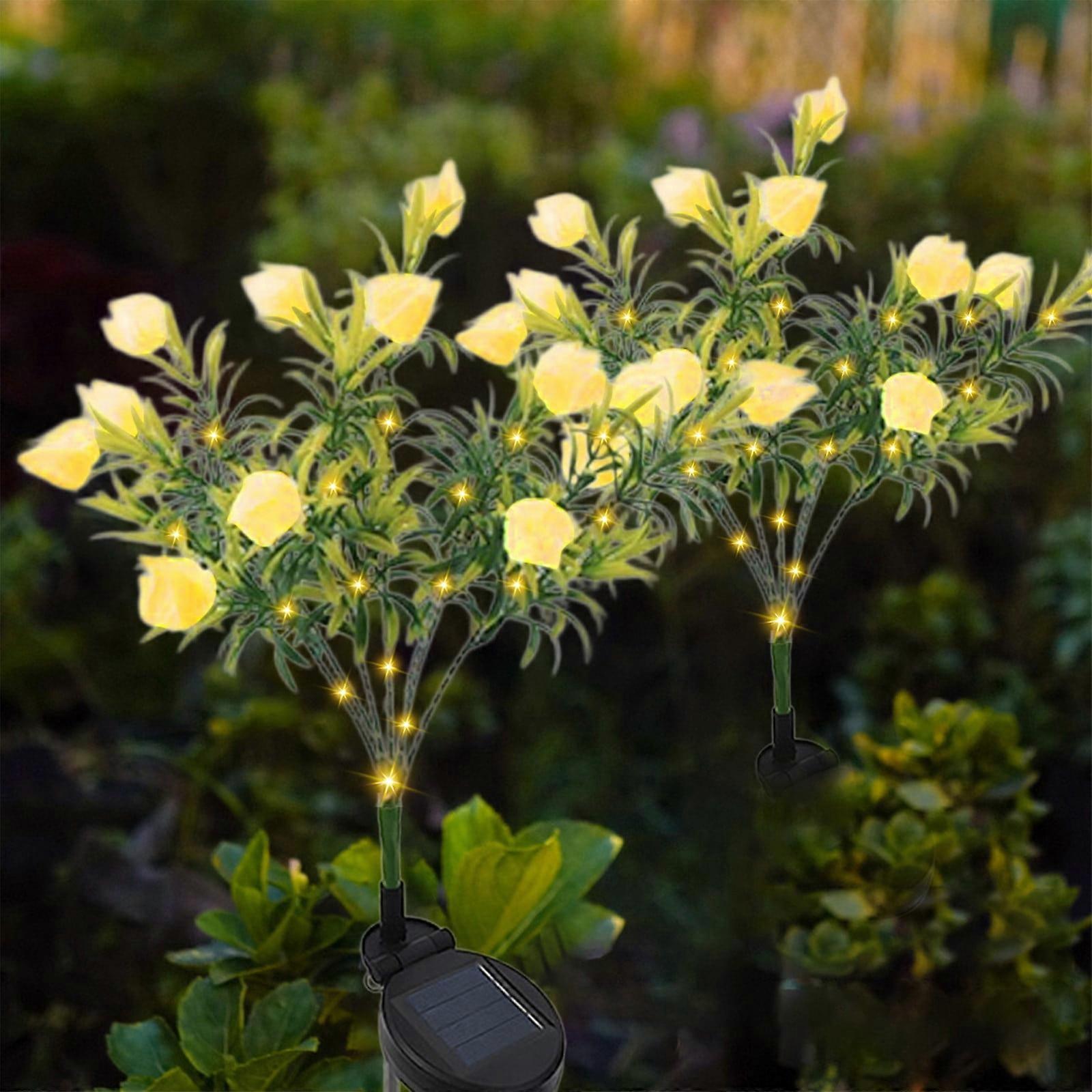 Twfbrm Solar Flower Lights 29", Realistic Gardenia LED, Waterproof Stake Lights, Auto ON/OFF for Yard, Patio, Pathway