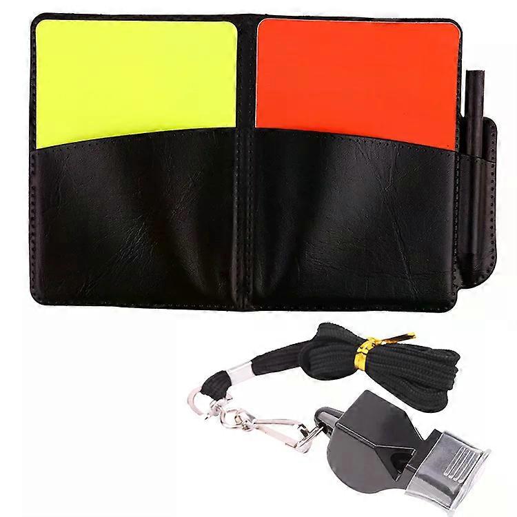Football Match Referee's Red And Yellow Card Set Football Referee Equipment With Leather Case Record Paper And Whistle