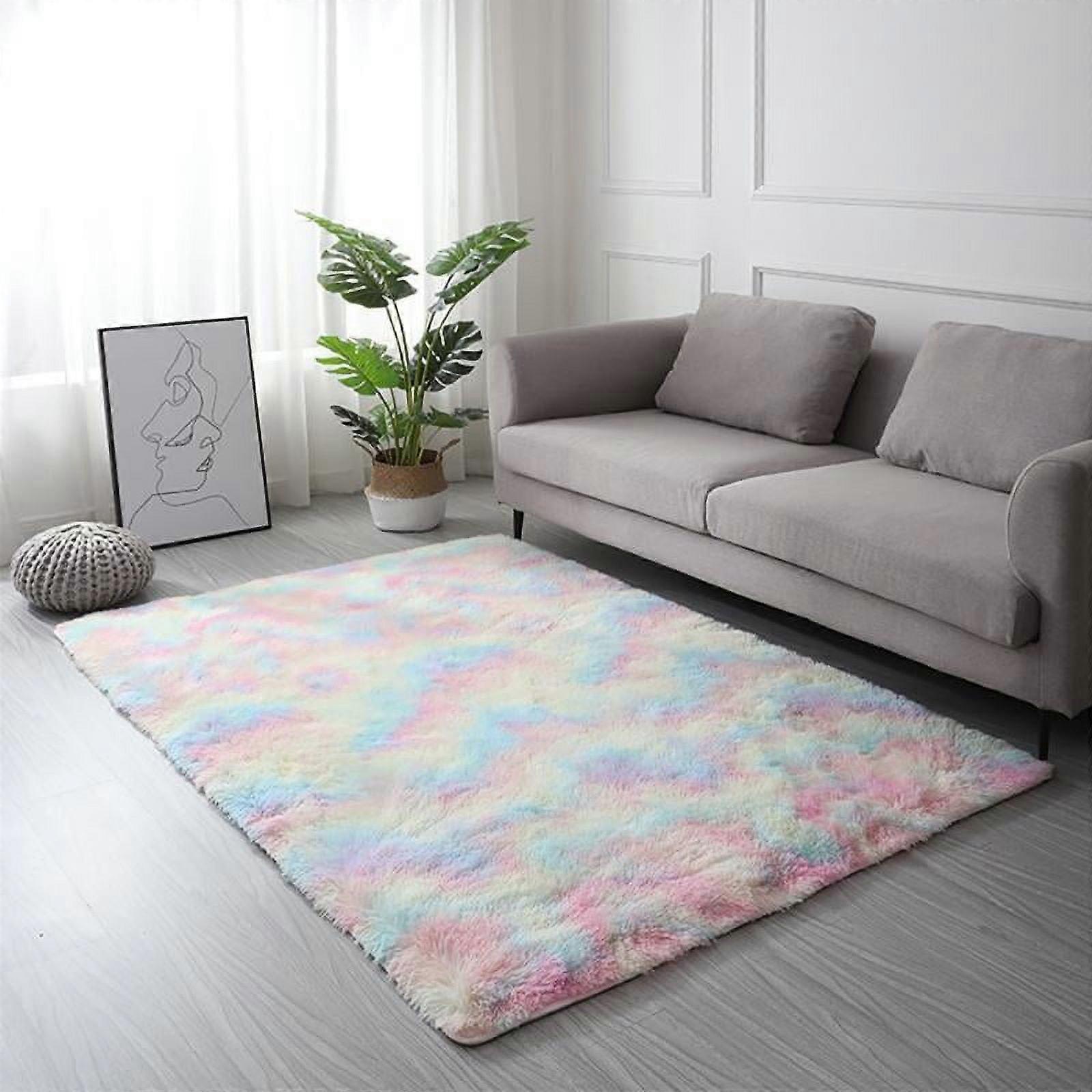 JANDEL Fluffy Bedroom Rug Shaggy Geometric Design Area Rug for Girls Baby Room Kids Living Room Home Decor Floor Carpet, Rainbow 60*160cm