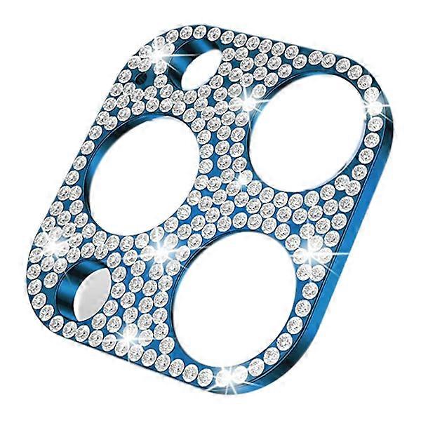 Tempered Glass Lens Protector with Rhinestones, Shockproof Full Protection Film compatible with iPhone 14 13 Pro Max Mini, Blue