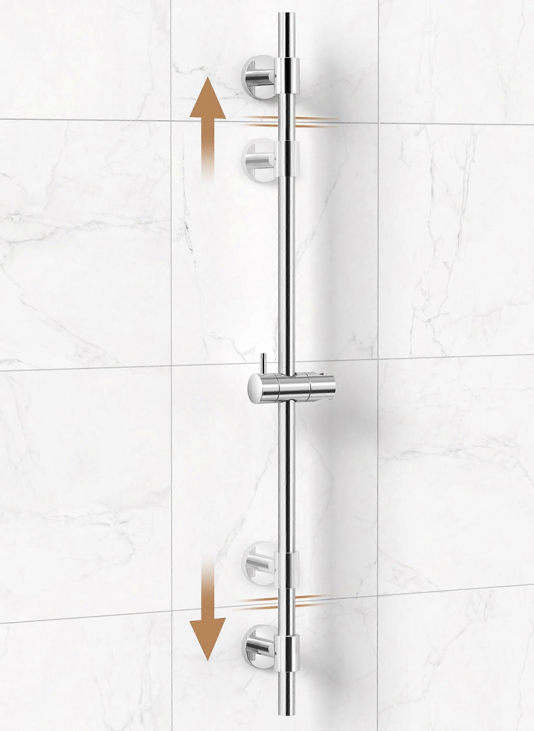 18/8 Stainless Steel Shower Slide Bar – Durable, Adjustable, and Easy to Install Enjoy reliable performance and longlasting quality with this rustproof, allmetal shower slide bar designed for versatile use in any bathroom. Built from materials and engineered for ease of installation, it offers both durability and practical flexibility for every household. Key Features and Benefits: Rustproof AllMetal Construction: Made from grade 18/8 stainless steel to resist rust and corrosion in moisture environments. Protects bathroom walls from stains and maintains a clean, like appearance over time. Solid Brass Shower Head Holder: Crafted entirely from solid brass with zero plastic parts. Designed for maximum sturdiness, preventing bending, loosening, or cracking. Provides firm support for handheld shower heads up to 2 kg. ExtraLong Adjustable Slide Bar: Measures 30.71 inches (780 mm) in length and 0.87 inches (22 mm) in diameter, offering 20% more length than standard slide bars. Allows height adjustment of the handheld shower for adults, children, and even pets to achieve comfort. Adjustable Mounting Brackets: Two adjustable brackets give flexibility in aligning with existing drill holes or grout lines, reducing the need for tile drilling. Bracket distance ranges from 20.5 inches (520 mm) to 28.4 inches (720 mm) to suit a variety of installation scenarios. Secure NoLoosening Holder: Features a twisttightness adjustment and duallock design to keep the shower head in place without slipping. Enables adjustment of both angle and height for shower positioning. ScrewMounted Installation: Comes with SUS 304 stainless steel screws and anchors for secure wall mounting. Requires a 6 mm drill bit. The slide bar is a multipiece assembly made for straightforward installation. Practical Applications: 1. FamilyFriendly Bathrooms: Adjust the shower head height to suit parents, children, or elderly family members without the need for separate fixtures. 2. Pet Washing Station: Lower the handheld shower for comfortable and efficient pet cleaning without extra equipment. 3. Shared Living Spaces: Easily adapt shower setup for users of different heights and preferences, ideal for guest bathrooms or rental properties. This stainless steel shower slide bar combines strength, flexibility, and ease of installation to deliver lasting convenience and comfort in your daily bathing experience.