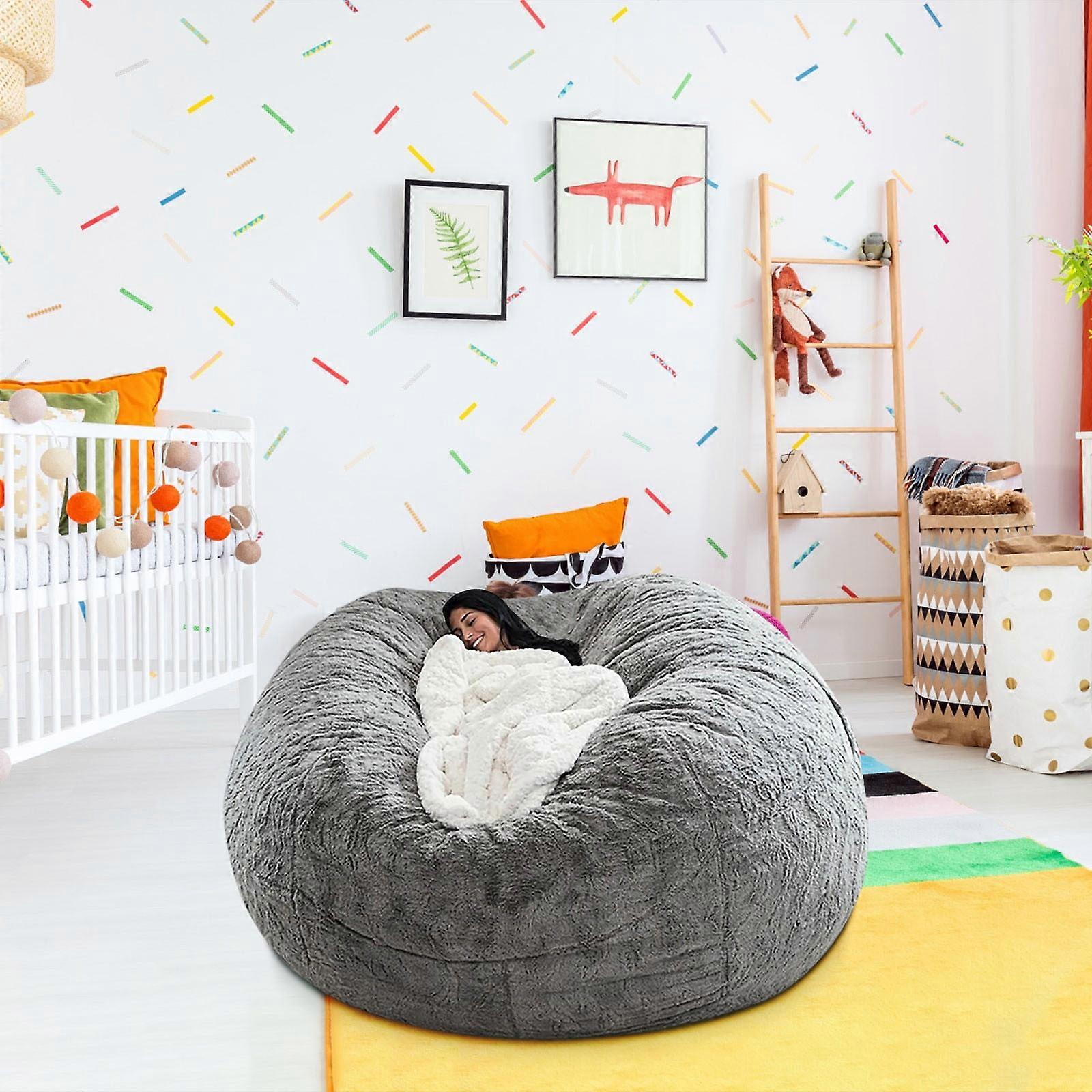 Loyerfyivos Bean Bag Chair Cover 70.8In*35.4In Gray, compatible with Big Joe, No Filler, for Adults & Kids, Oversized Round Lounge Sofa