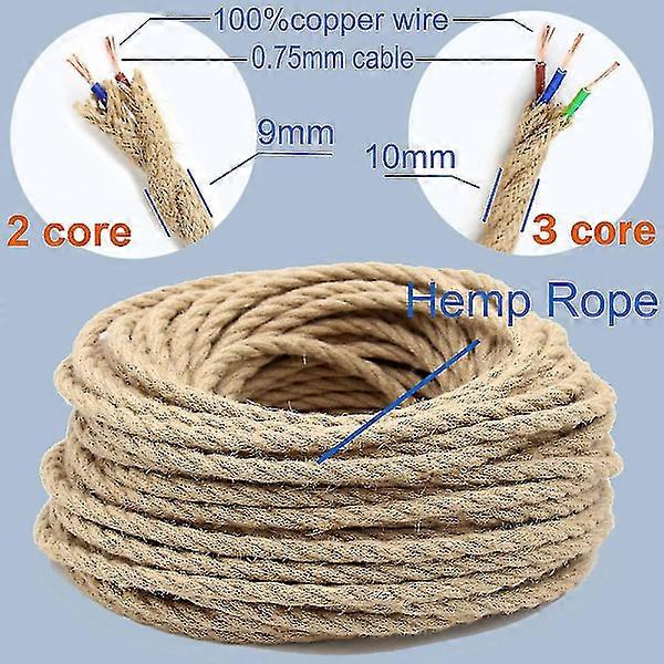 2-core 3-core twisted cable hemp rope electrical wire retro style copper vintage lamp cord woven textile wire hanging light cord 3 Core 10m