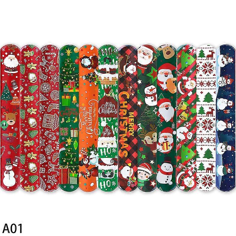Christmas Pattern Wristband Decorations Cartoon Santa Claus Snowman Elk Slap Bracelet Toys Kids Xmas New Year Party Gifts Favors