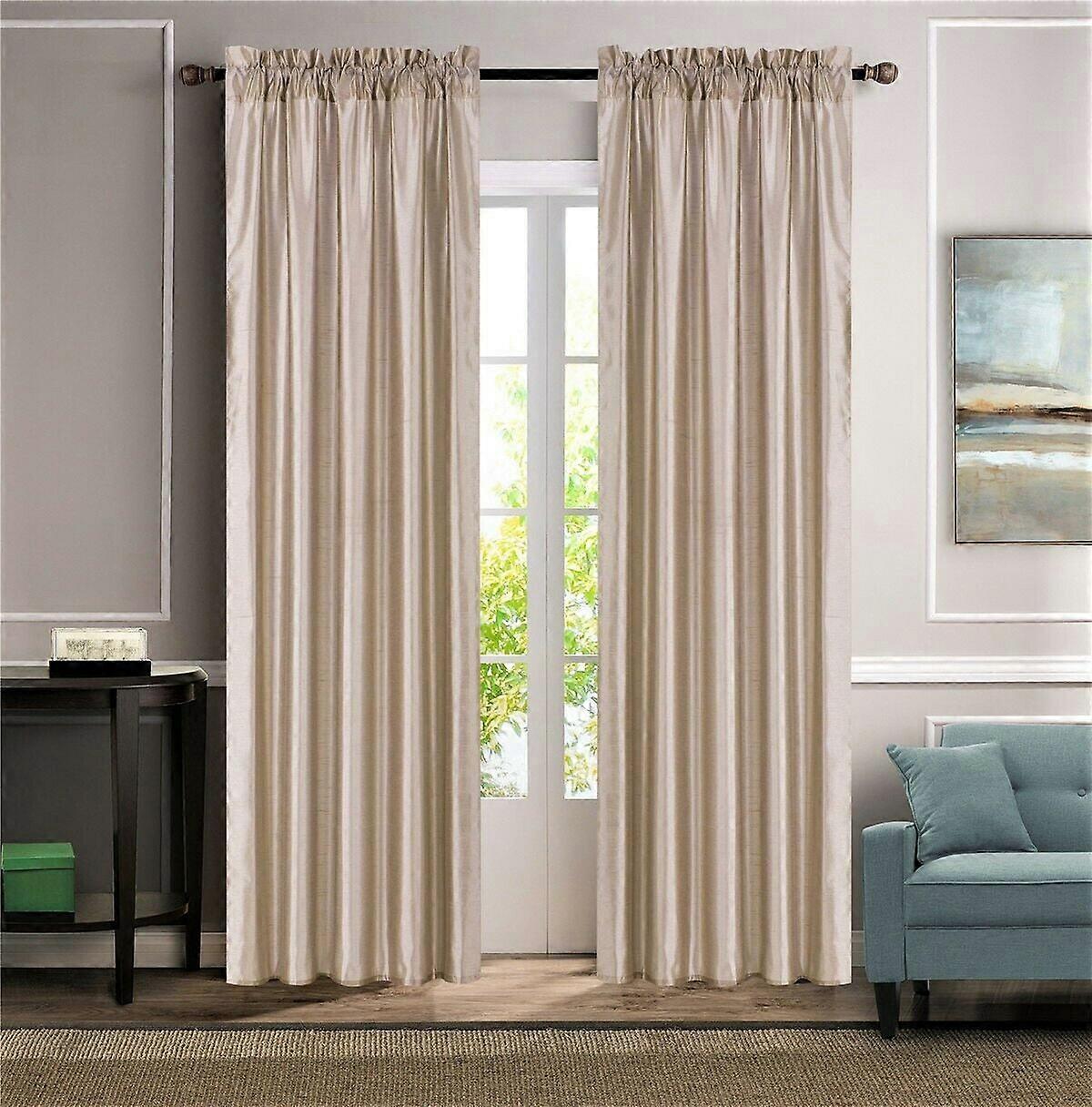 SAMIMPORT-2011 Gray Linen Look Taupe Cross Pattern Rod Pocket Curtains, 54” x 84” (2 Panels)