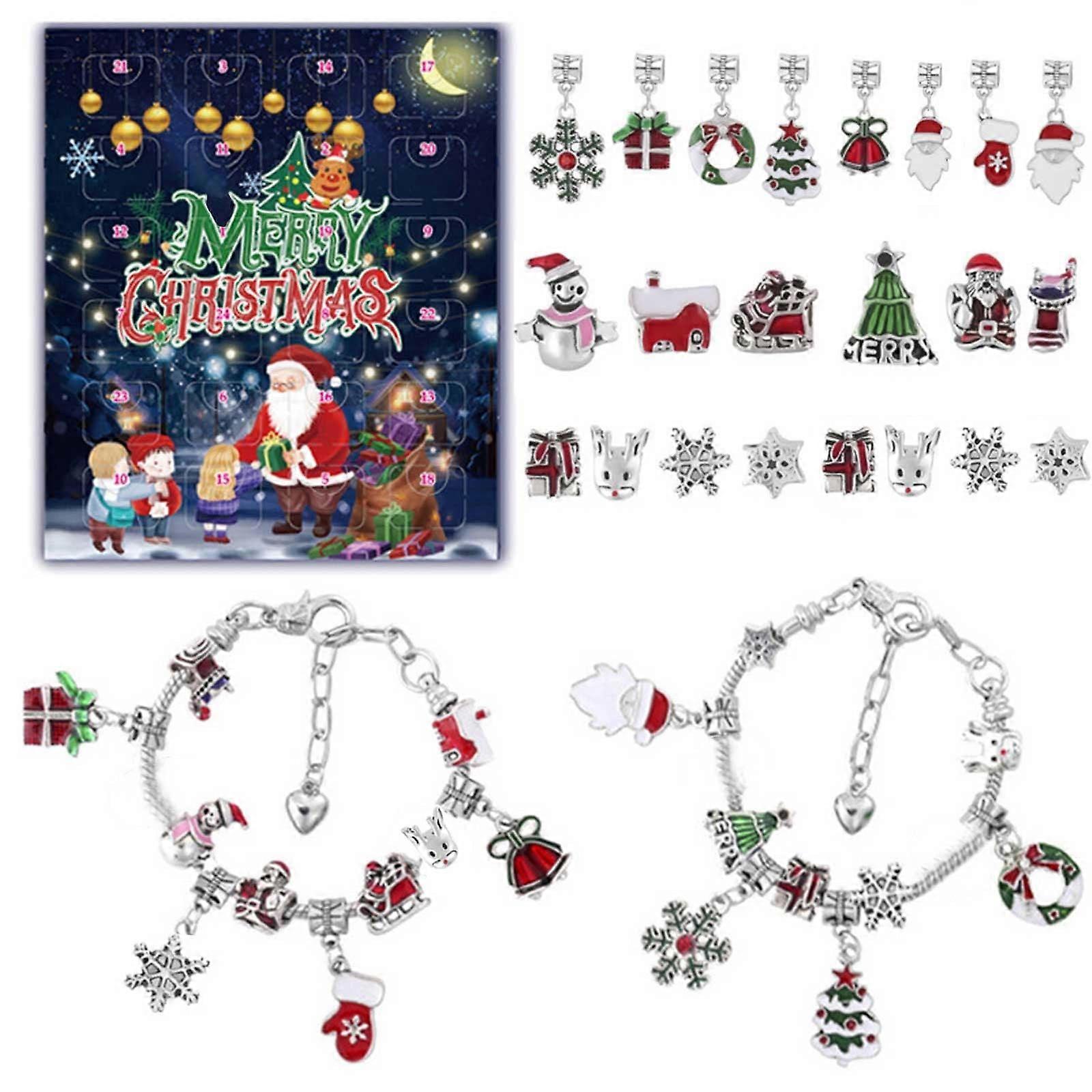 Christmas Advent Calendar Bracelets 2024 for Girls 24 Days Xmas Countdown Calendar DIY Jewelry Making Kit Gift for Kids Teens Women
