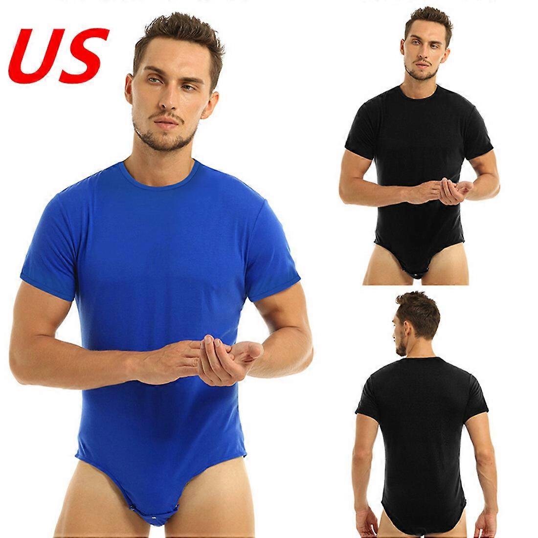 Adult Men Lingerie Short Sleeve Press Button Crotch Shirt Bodysuit Romper Pajama