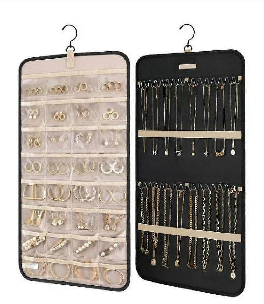WIURAY Face & Storage Bags 14X23 Inch Hanging Jewelry Organizer Storage Roll With Hanger Wall Mounted Necklace Holder Display Hanging On Wall