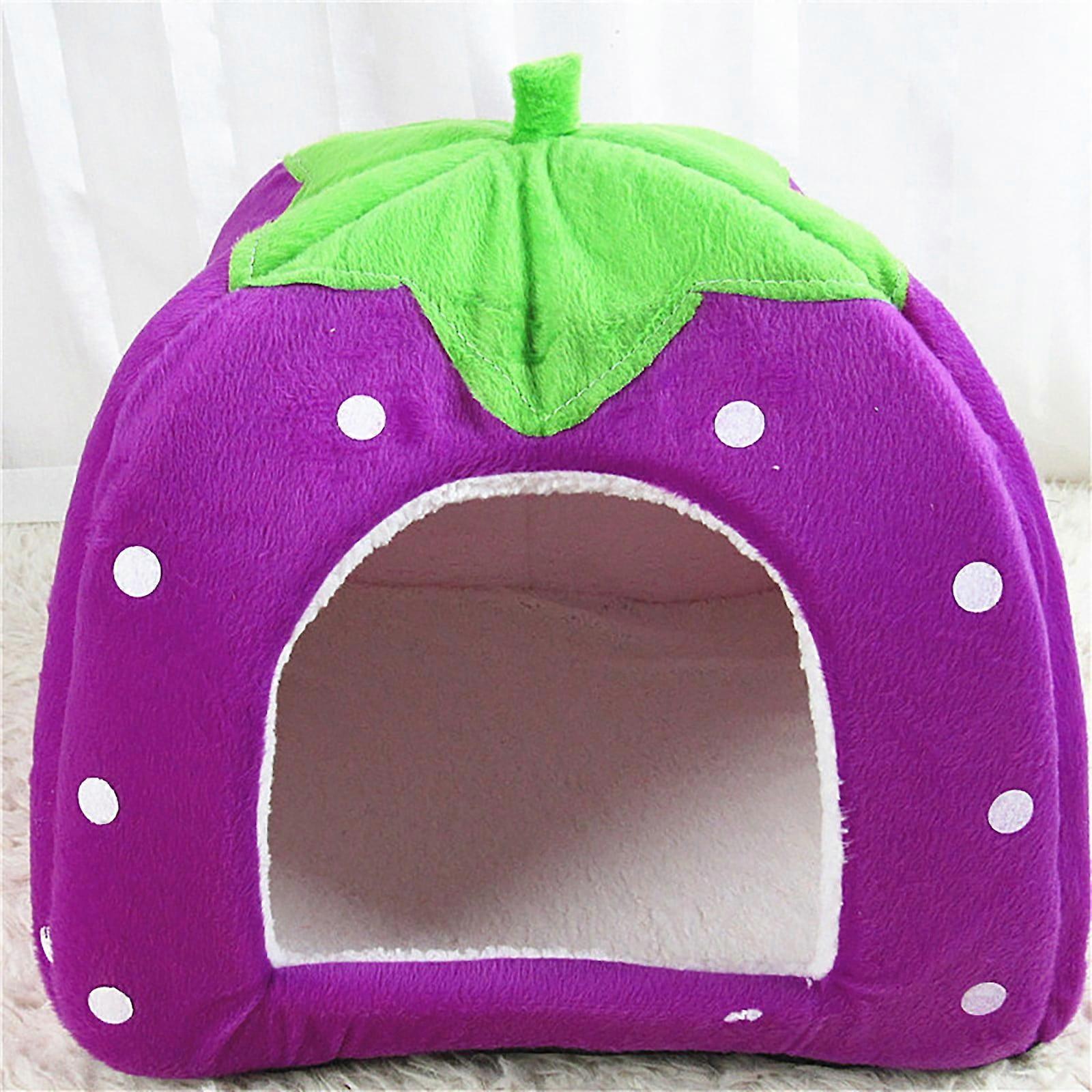 Shldybc Winter Indoor Cat House Cat House Padded Cat House Folding Yurt Strawberry Tent(31 * 31 * 33cm, Pink)