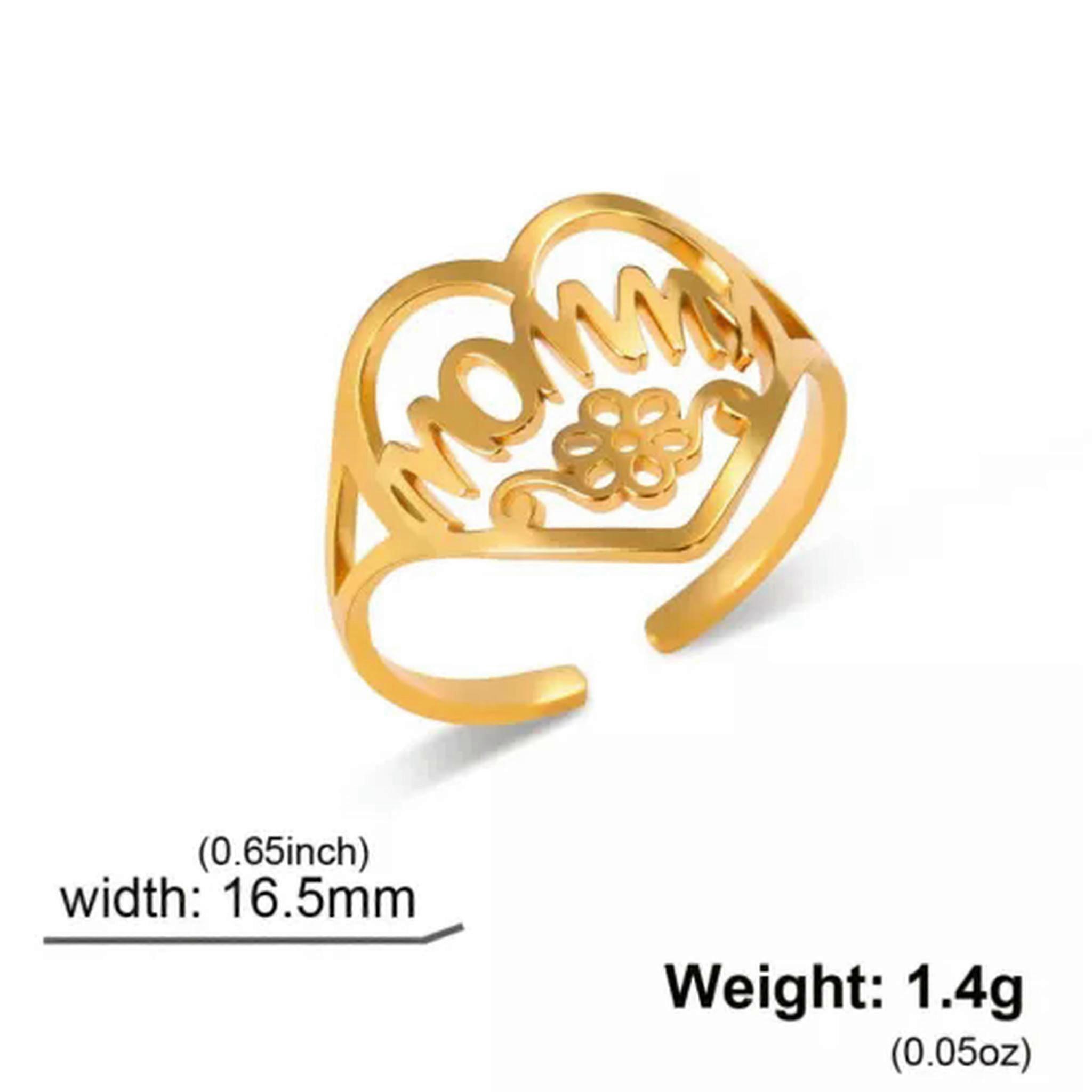 RSAMD Mommy Letter Flower Love Heart Rings Stainless Steel Adjustable for Mom Jewelry-Resizable-Gold