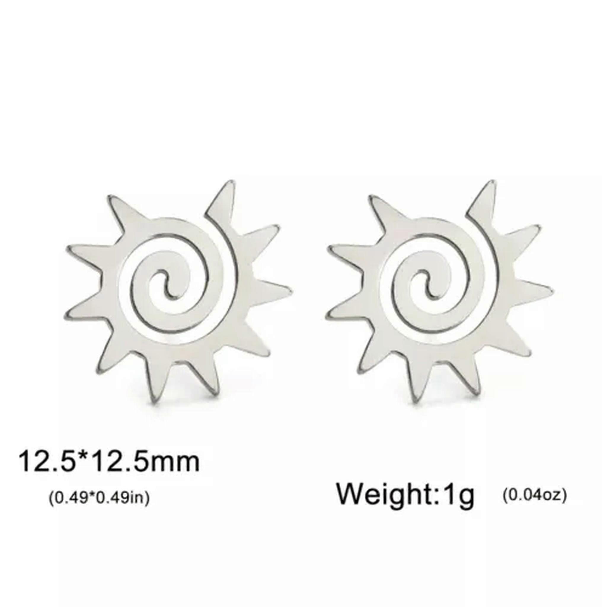 RSAMD Spiral Sun Stud Earring Stainless Steel Ear Studs for Women Girls Trendy Jewelry-Steel