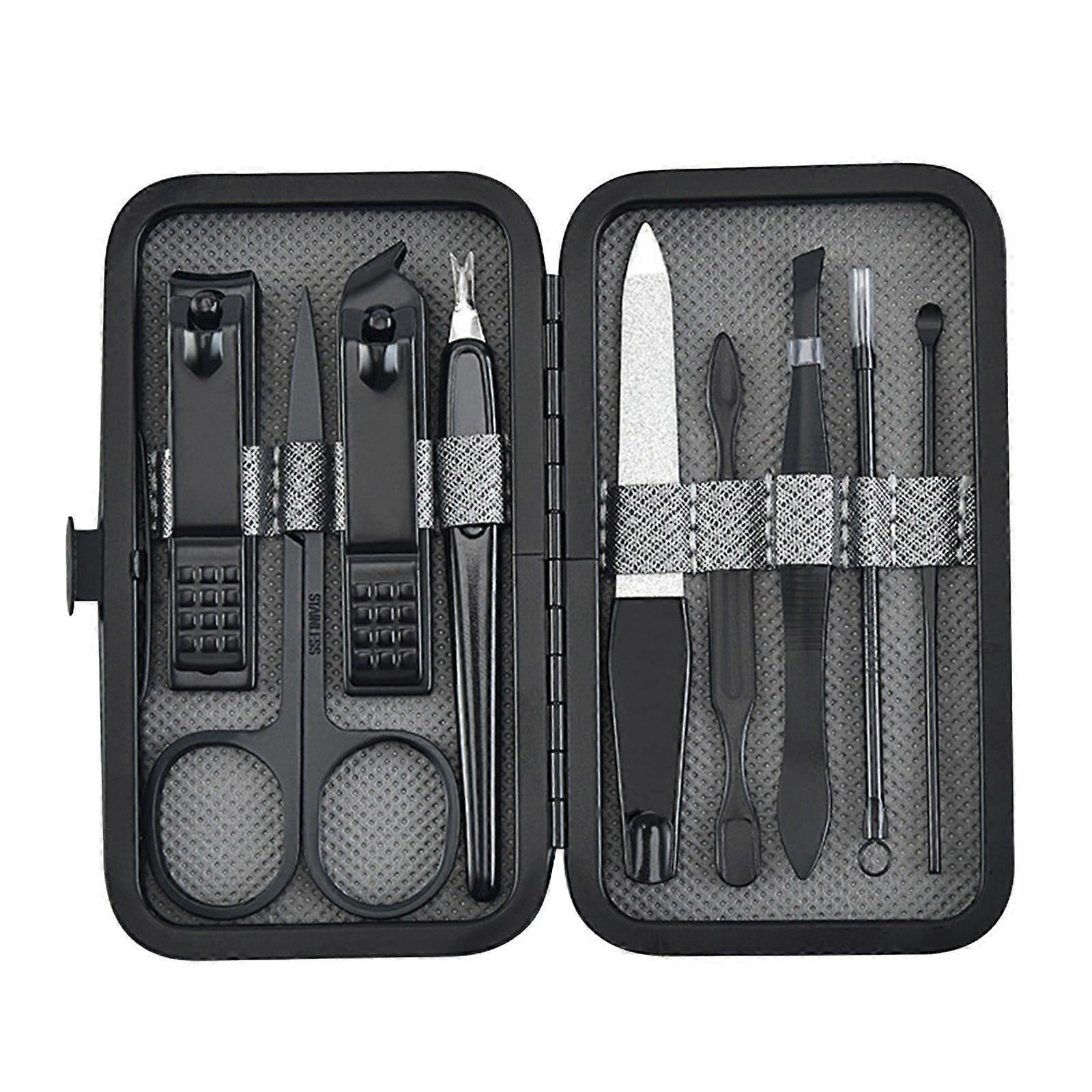Manicure Set Nail Clippers Pedicure Kit 9 Nail Care Tools For Travel & Grooming (Black、red、black)