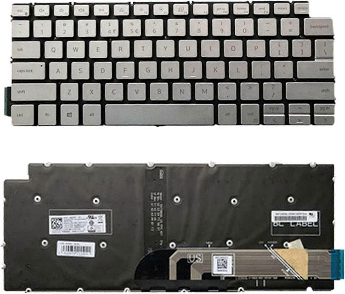 New US Silver English Backlit Laptop Keyboard (Without palmrest) for compatible with Dell Inspiron 14 5493 5494 Light Backlight