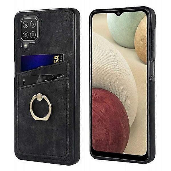 Slim, elegant and smooth mobile phone case with a retro look and ring holder. The integrated card slots on the back allow you to carry the most essential cards such as driver's license and credit cards without having to carry around a thick wallet. On the back there is also a ring holder that is 360 degrees rotatable. This means that you can hold your phone both for a longer time and more comfortably, the ring can also function as a stand for comfortable watching movies etc. The case also has a raised frame which prevents the screen from coming into contact with a flat surface if the phone is placed with the screen down. Features: - Slim Design - Shock-absorbing - Height Frame Protects Display and Camera Housing - 2 Practical Card Slots - Protects against scratches, dirt and dust - Non-slip coating - 360 Degree Rotatable Ring Holder (Stand) - Material: PU Leather (Vegan Leather) - Fits: compatible with Samsung A12 5G