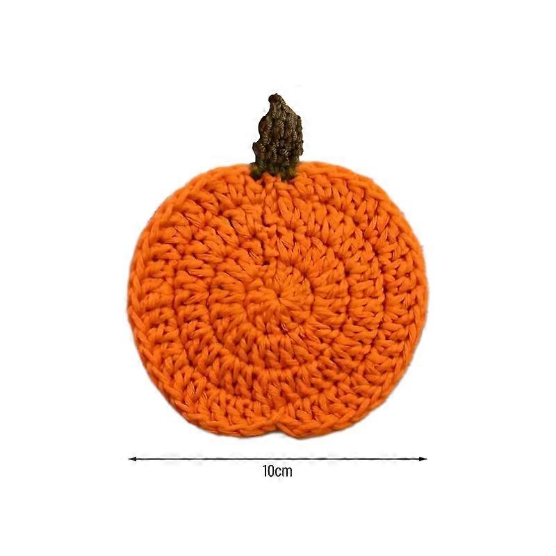 Halloween Crochet Pumpkin Coasters Autumn Thanksgiving Fabric Handmade Cup Mat Halloween Table Decor Fall Farmhouse Decoration