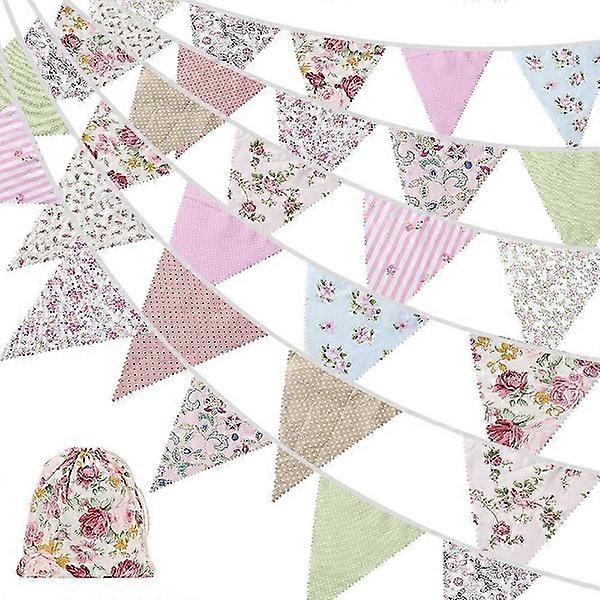 40 Feet Fabric Pennant, 42 Pcs Outdoor Pennant Banner, Floral Vintage Cotton Triangle Shaped Flag for Ga [BR] Multicolor