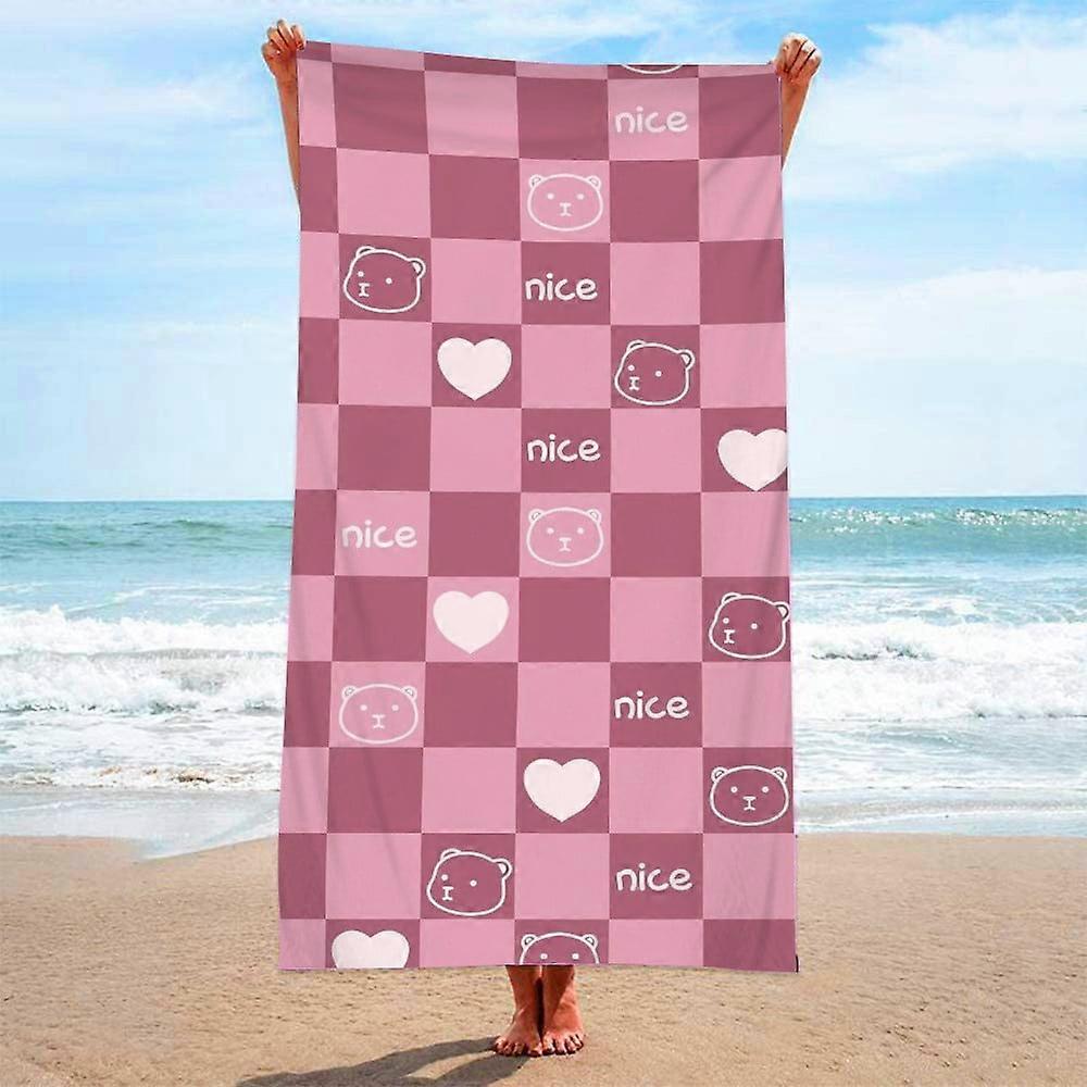 Microfiber Checkered Beach Towel, Black Pink Buffalo Plaid, Sand Free, Absorbent, Lightweight, Soft, Quick Dry, Skin-Friendly (35.4x71 inch)