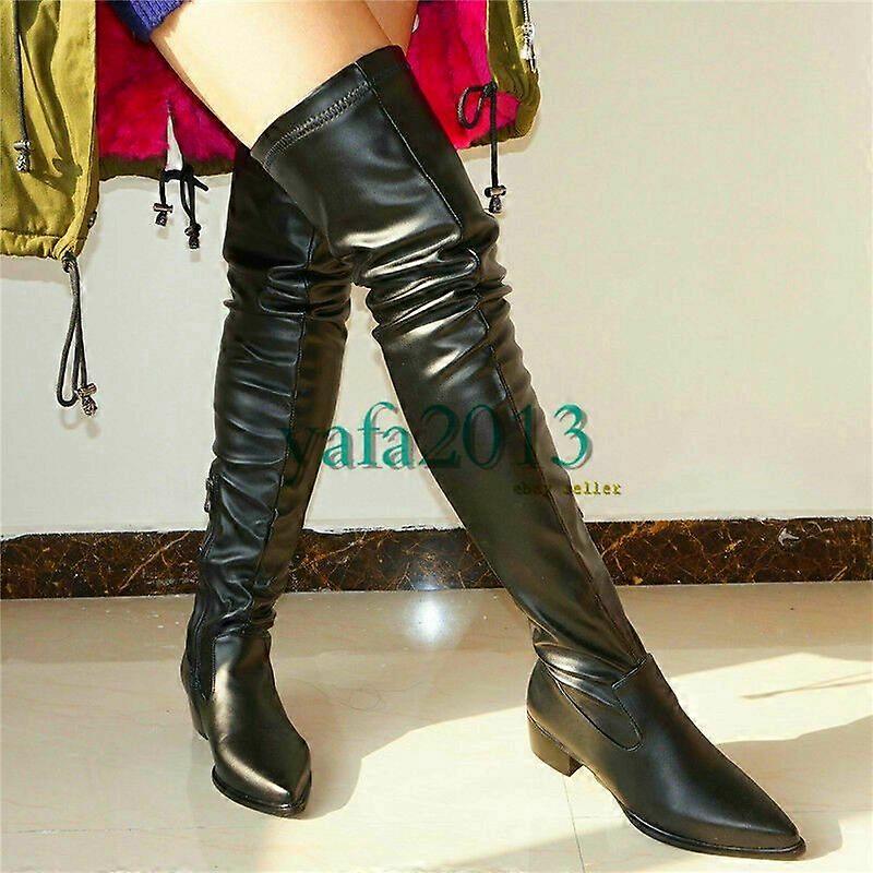 Women Winter Thigh High Boots Flats Over Knee Point Toe Stretch Long Boots Party