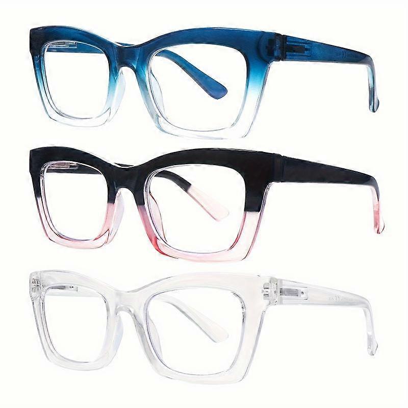 DEAAOK 3 Pack Oprah Style Reading Glasses for Women Blue Light Blocking Square Fashion Readers with Spring Hinge Computer Eyeglasses