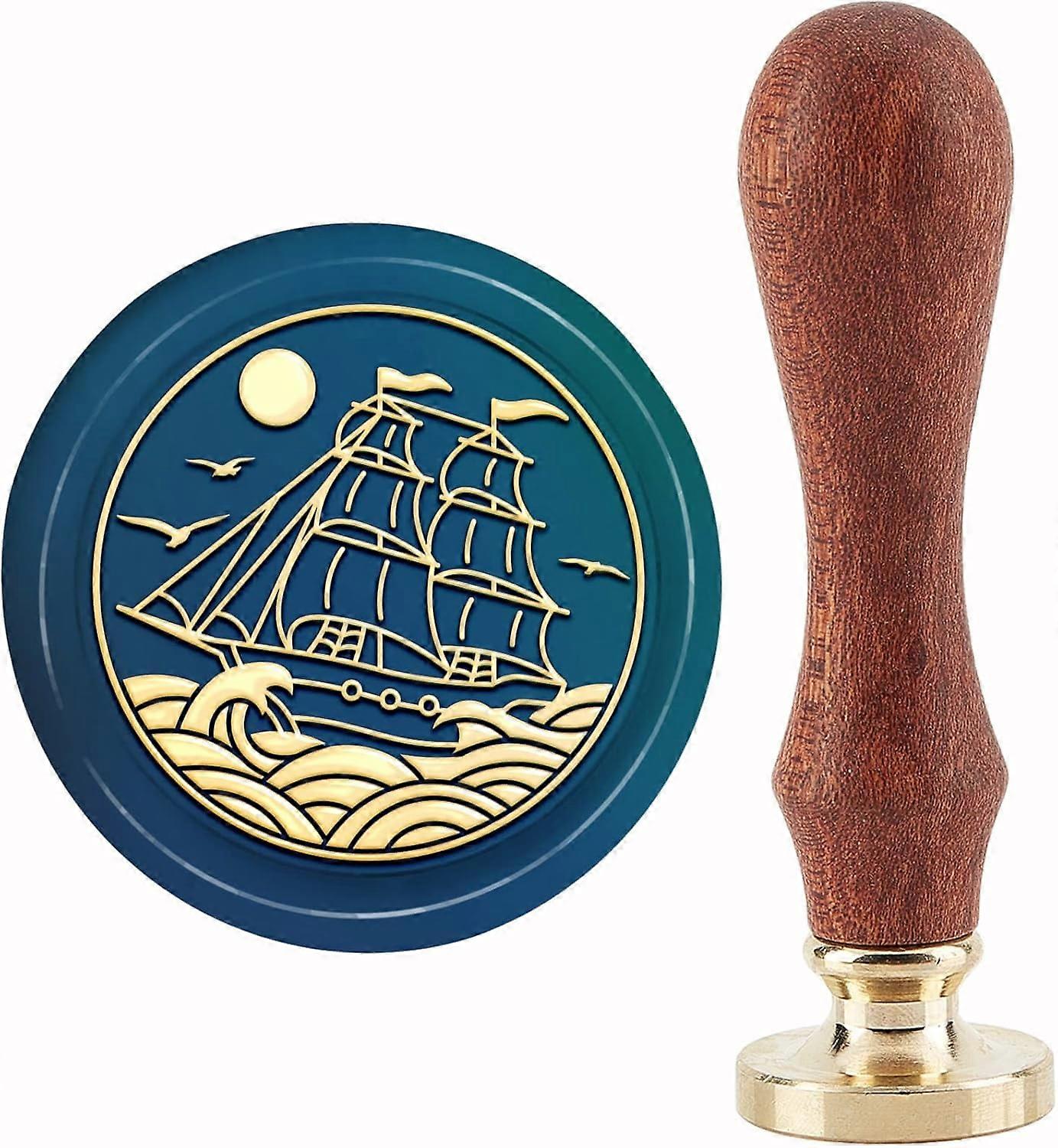 Waves Wax Seal Stamp Sailboat Vintage 30mm Removable Brass Head with Wood Handle for DIY, Wedding Invitations, Holiday Gifts