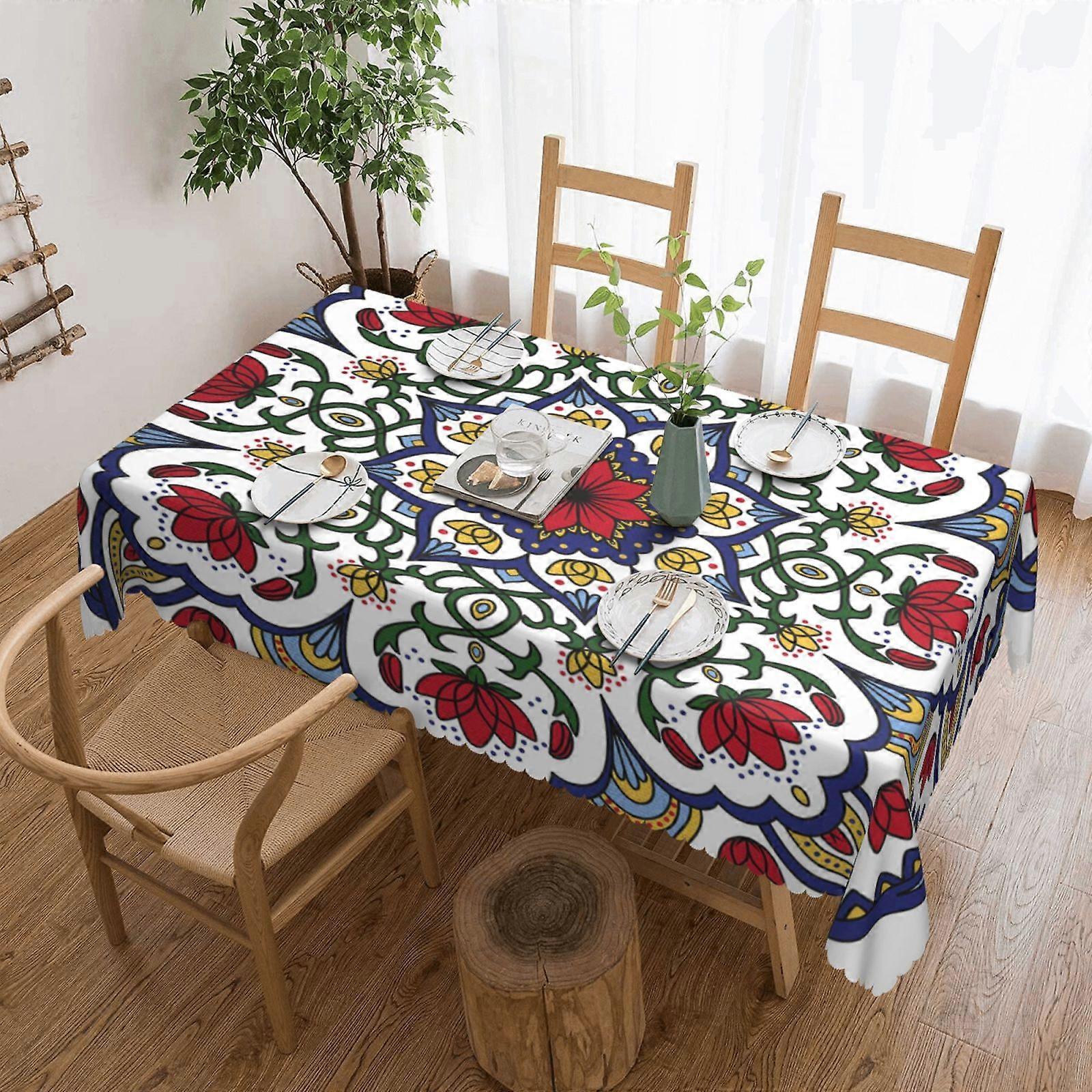 Moroccan Lotus 3D Print Tablecloth, Water Resistance Spillproof, Compatible with Thanksgiving/Christmas Family Decor