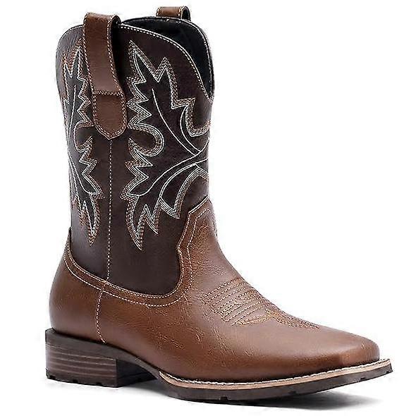 ��7Colors��Eleet Cowboy Boots for Men -Square Toe Botas with Classic Embroidered, Slip Resistant Western Boots, Heel Ankle, Comfort Vintage, F