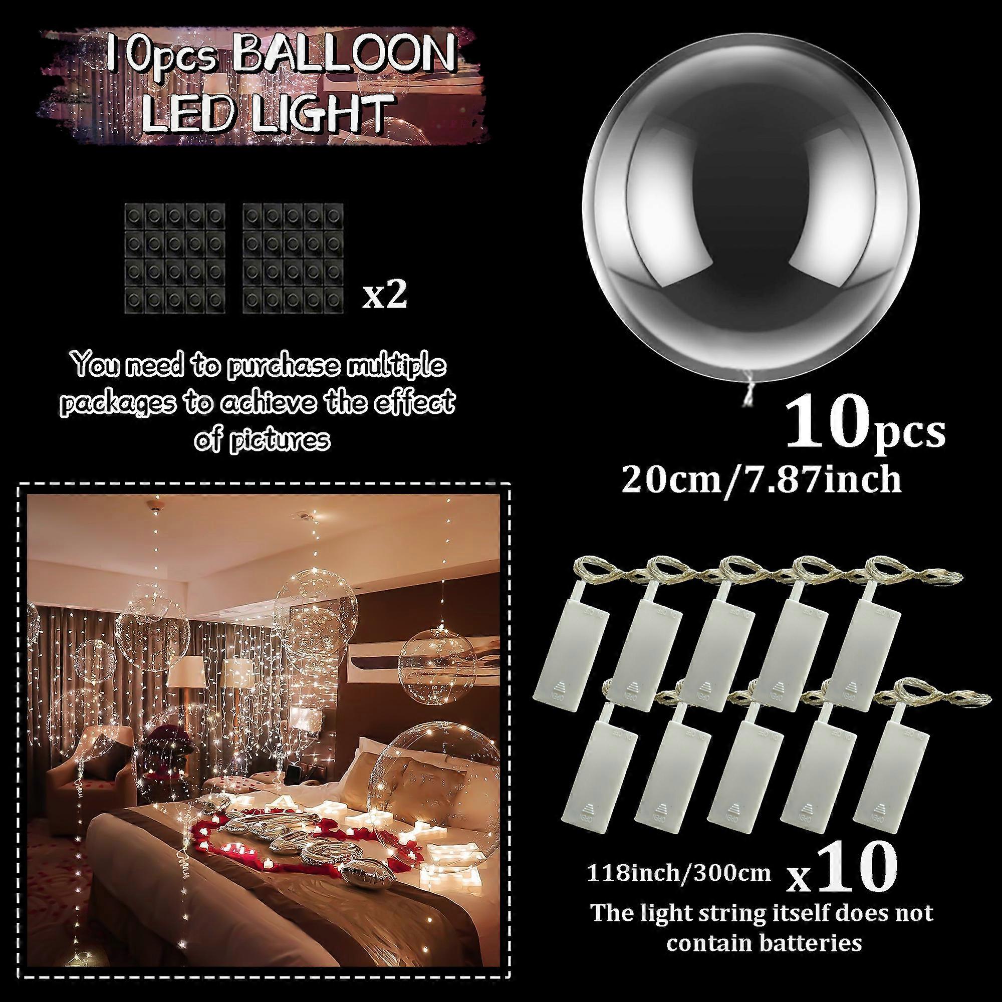 10 transparent wave ball LED (excluding internal power supply) balloon set, suitable for Valentine's Day, Christmas, Halloween