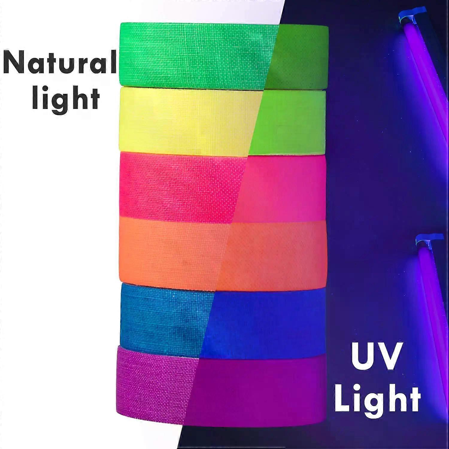 6Pcs/Set Fluorescent Tape Self Adhesive Sticker For Multipurpose DIY Craft Durability Black Light Reactive Creativity Home Decor