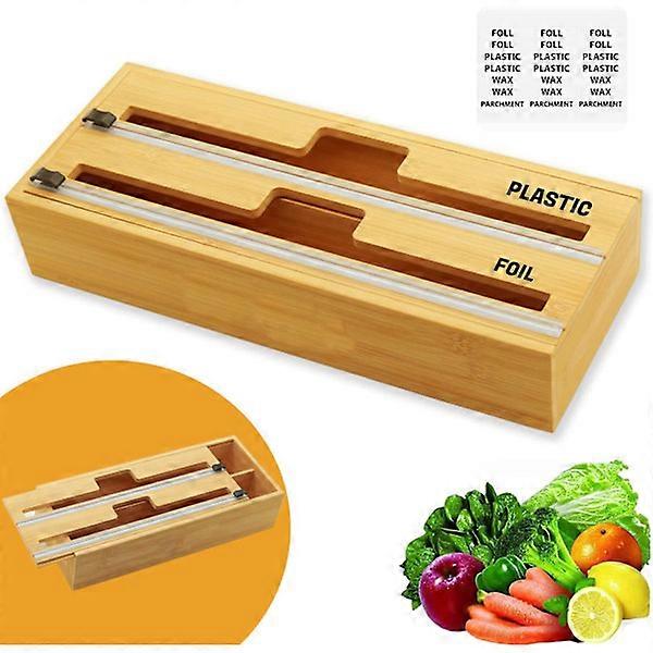 Plastic Wrap Dispenser and Cutter - Aluminum Foil and Wax Paper Dispenser for Kitchen, Bamboo Roll Holder, Compatible with 12 Inch