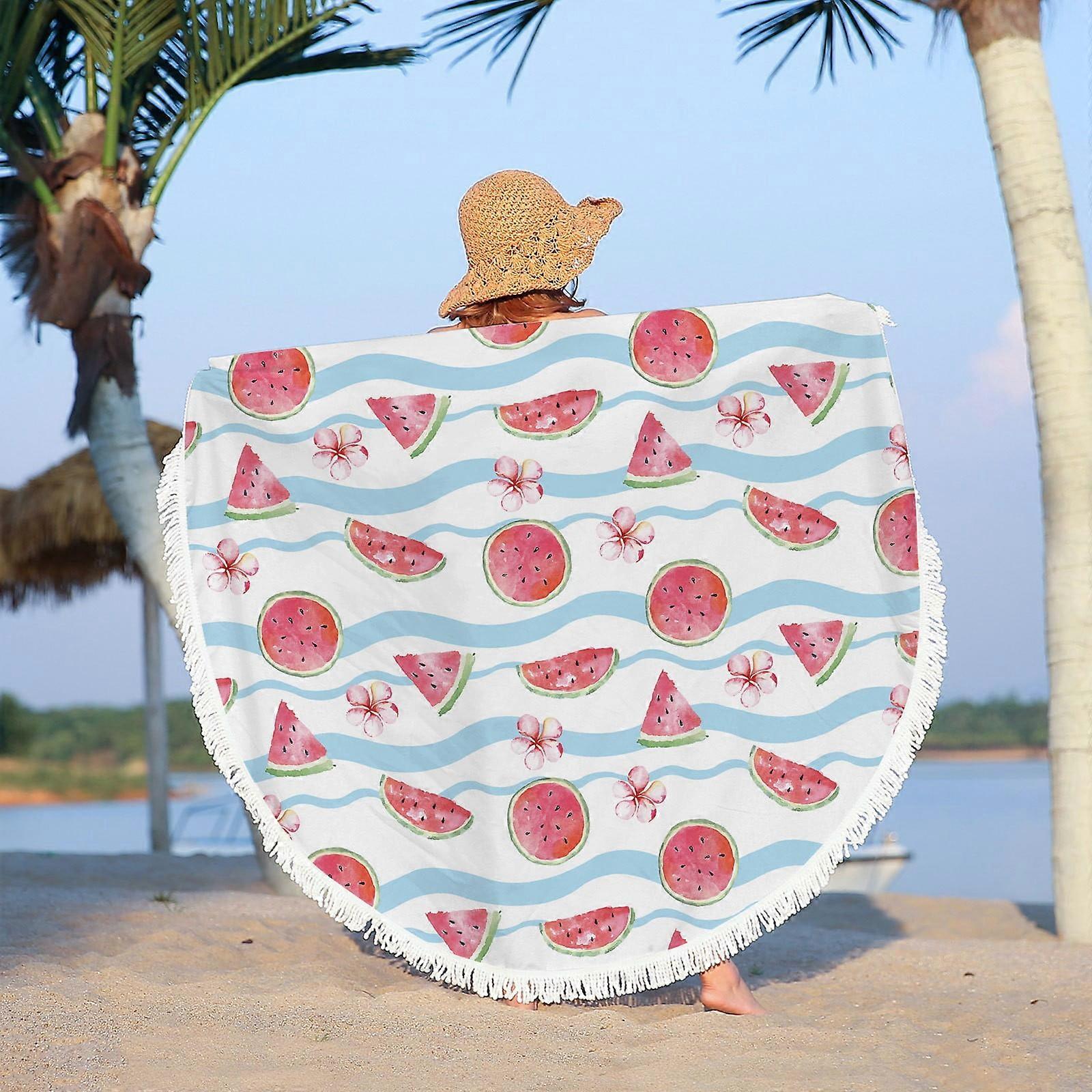 Djunllk Beach Blanket Waterproof Sandproof - Round Microfiber Mat, Lightweight Multifunctional Towel Shawl with Tassels, Fast Drying