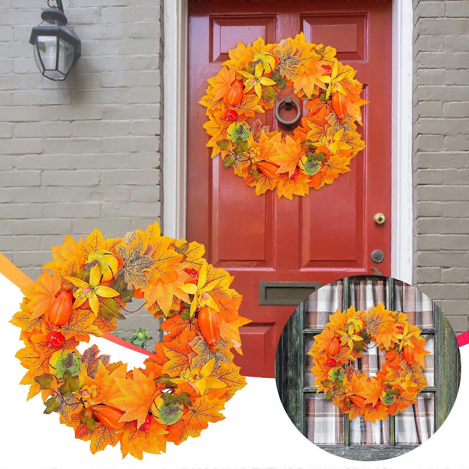 Cailmei Thanksgiving Pumpkin Wreath Door Hanging Maple Circle Window Decoration Orange Free Size