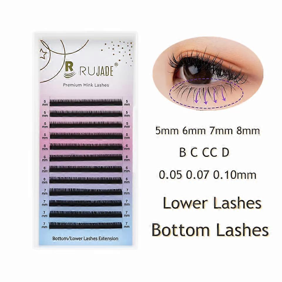 RUJADE Bottom Eyelashes 5mm 6mm 7mm 8mm Short Natural Looking B C CC D Curl Under Eye Lashes Extension Lower Eyelash Makeup