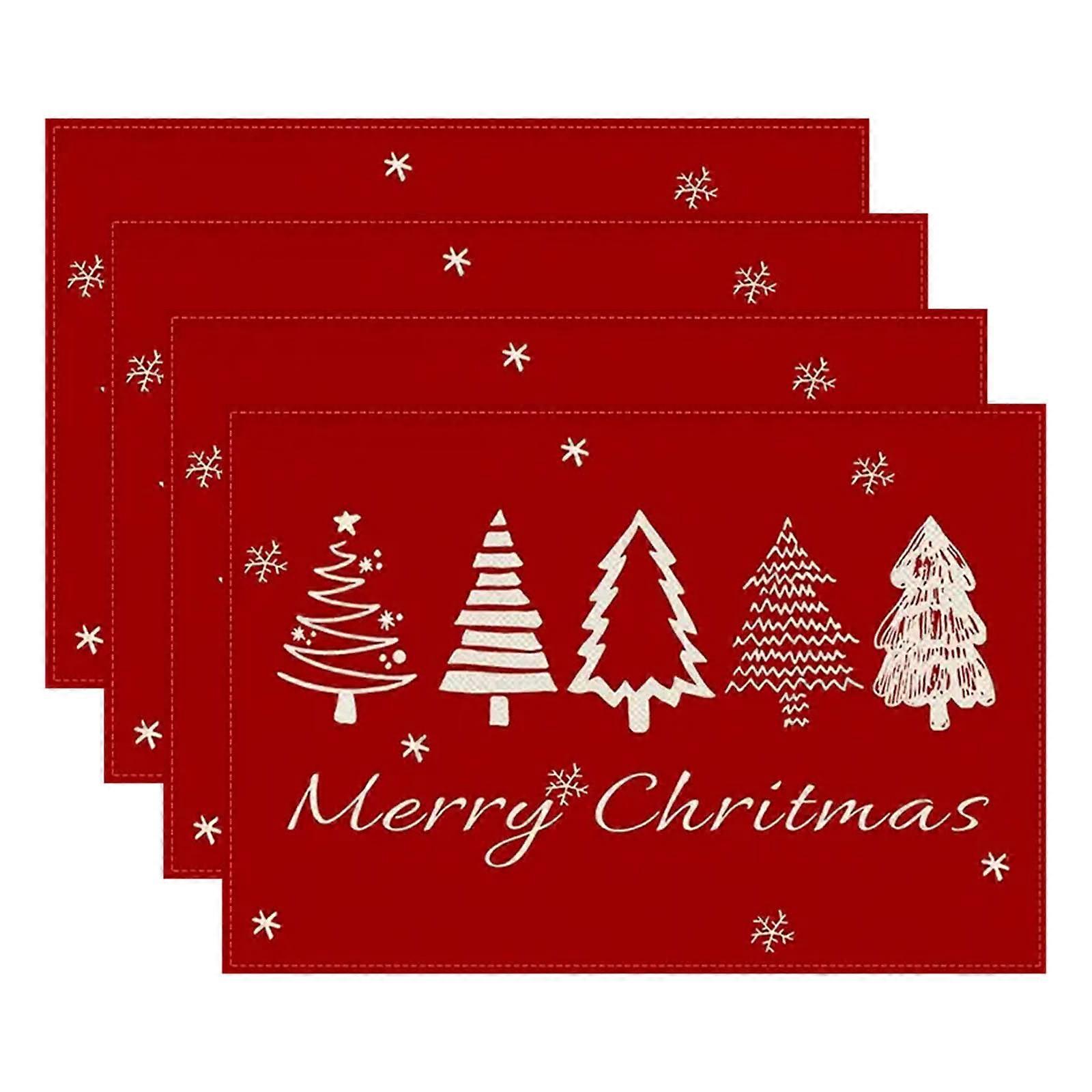 Wadada Christmas Placemats Set of 4, Plastic Washable Holiday Table Mats, Seasonal Winter Xmas Decor for Kids, Kitchen, Dining Room, Housewarming