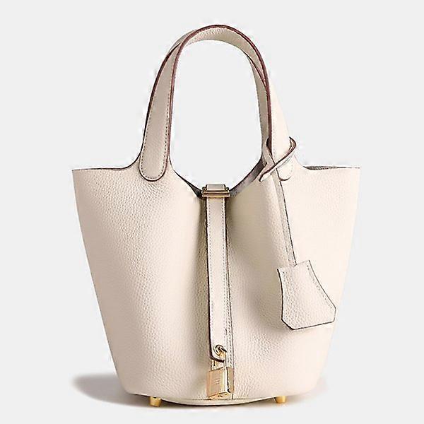 Off White Cow Leather Lychee Patterned Large Capacity Bucket Bag Genuine Leather Handbag for Daily Use-XF12- Off-white 1