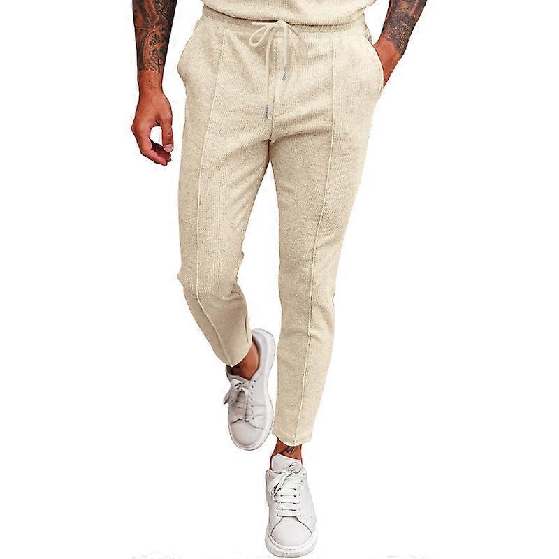2025 cross-border autumn men's casual pants European and American waffle tether elastic sports straight trousers men