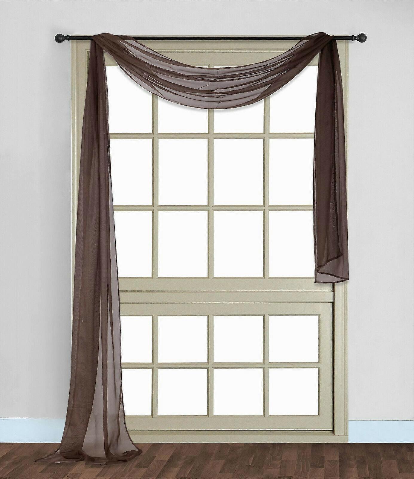 1PC VOILE SHEER SCARF WINDOW VALANCE BROWN ELEGANT COLOR SWAG TOPPER SEE THRU SIZE 37" WIDE X 216" LONG