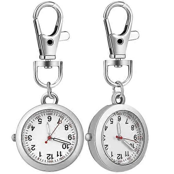 2 pcs Pocket Watch Keychain Watches With Buckle Pendant Key Ring Wristwatch Nurse Watches For Women Men silver