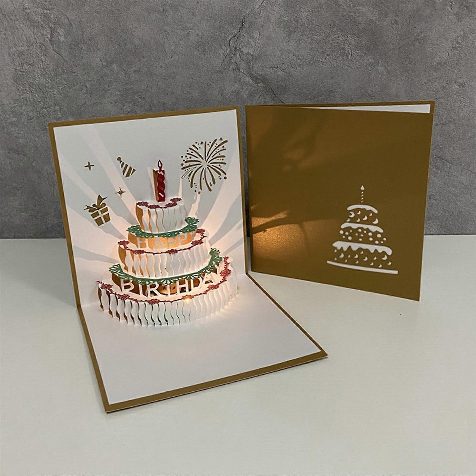 XEOVHV 3D Pop Up Birthday Cards with LED Light & Music, compatible with Happy Birthday Cake Design, Greeting Card for Mom, Wife, Sister, Boy, Girl,