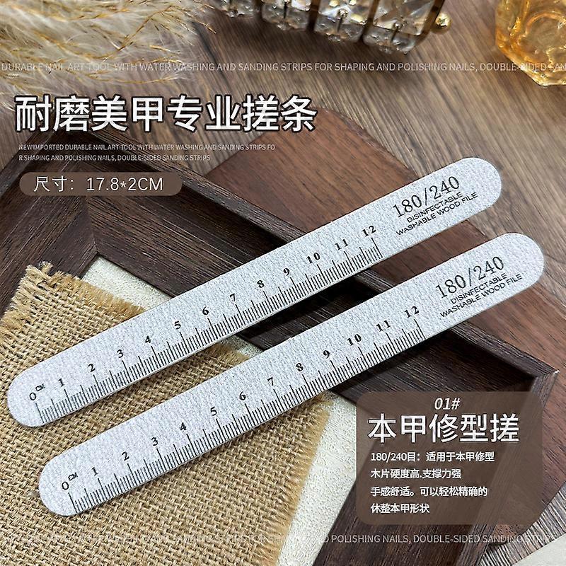 10PCS Washable Durable Wooden Nail Art Files Ruler 180/240 Grit Professional Sandpaper Cuticle Remover Buffer Manicure Tool