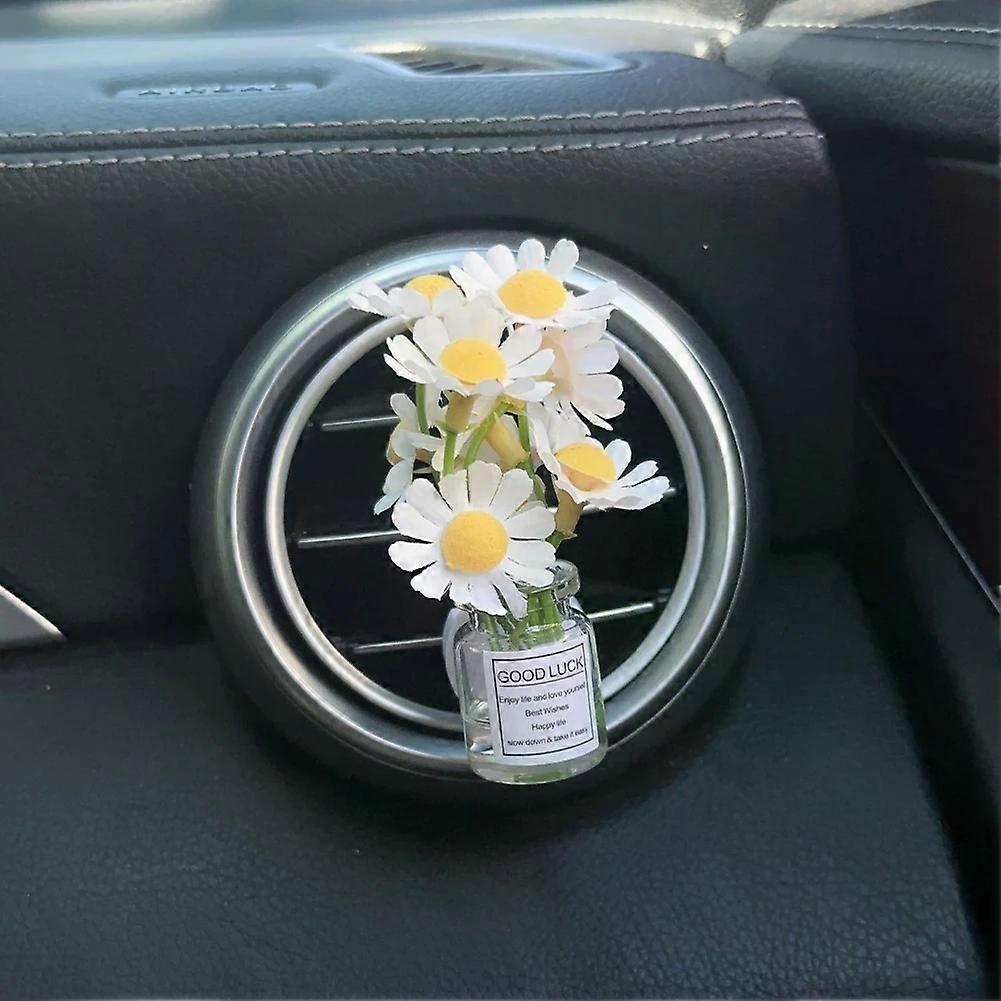 Car Center Console Air Outlet Simulated Flower Clips Ornaments Babysbreath Jasmine Glass Vase Ornaments For Girls Decorations