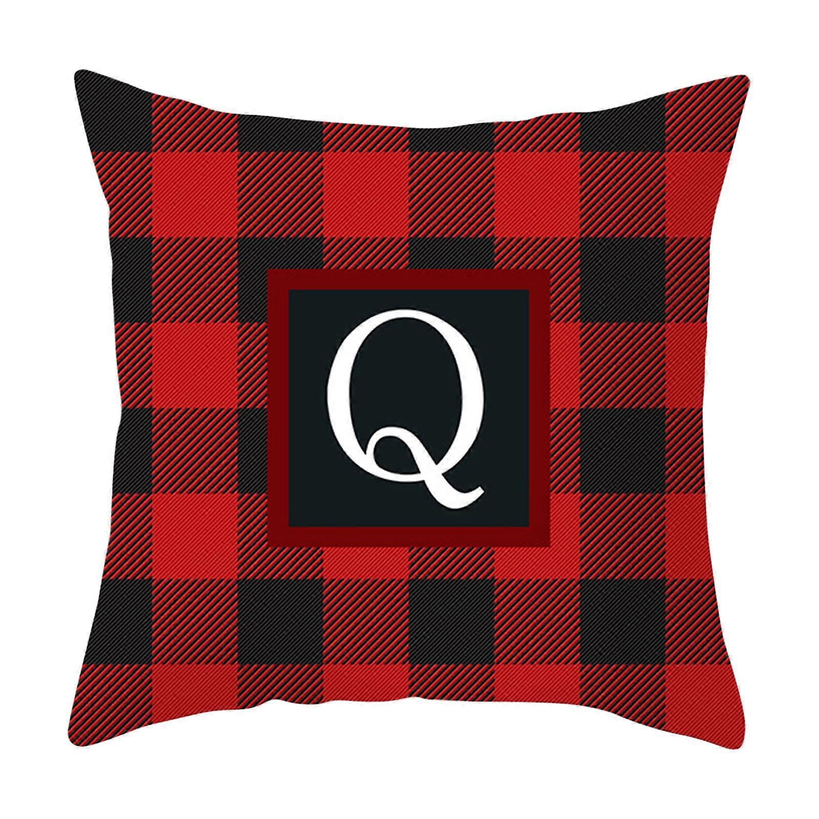 26 Initial Letters Christmas Pillow Covers 18x18, Buffalo Plaid Red & Black, Cotton Cushion Cases Xmas Decor for Home, Compatible with Sofa, Couch,