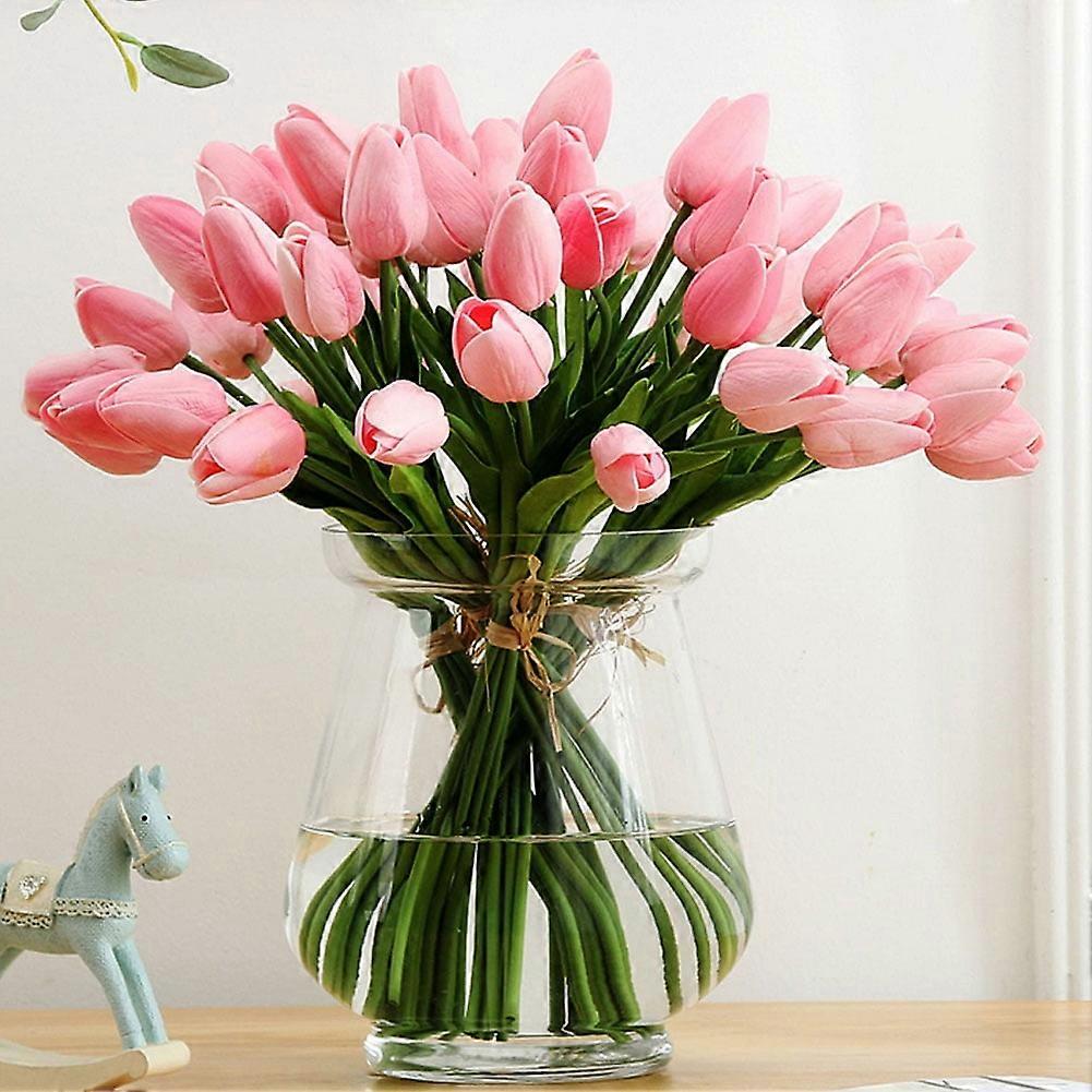 Manunclaims 1 Bouquet Artificial Tulips, Faux PU Tulip Stems Real Feel, 14.2" Tall, for Wedding, Easter, Spring Wreath, Centerpiece, Cemetery Decor